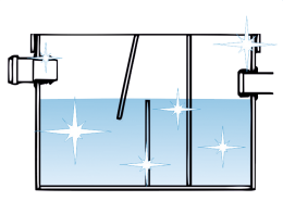 Мусор и твердые частички оседают на дно в первой камере, поэтому сток не засоряется остатками пищи.